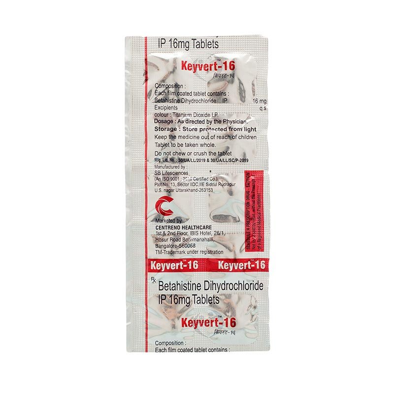 Keyvert-16 is a medicine used to treat the symptoms of Meniere’s disease. Symptoms include: dizziness (vertigo) ringing in the ears (tinnitus)